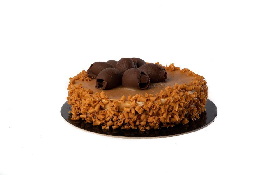 This cake contains cocoa sponge cake, vanilla cream, caramel and milk chocolate, with the caramel giving it its unique character. A sweet treat for any time of day!