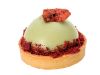 Tarte Pistachio: Pastry crust filled with a cream of pistachios, chocolate and fruity mousse. The decoration is done with red velvet sprinkles.