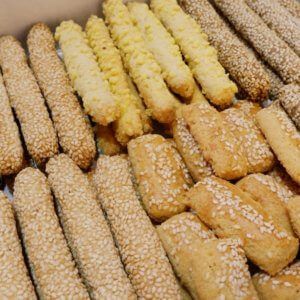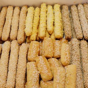 Brotsticks Box: Brotsticks mit Käse, mit Malz, Sonnenblumenkern-Vollkornbrotsticks und mit Sesam. etwa 0,75 Kilogramm.