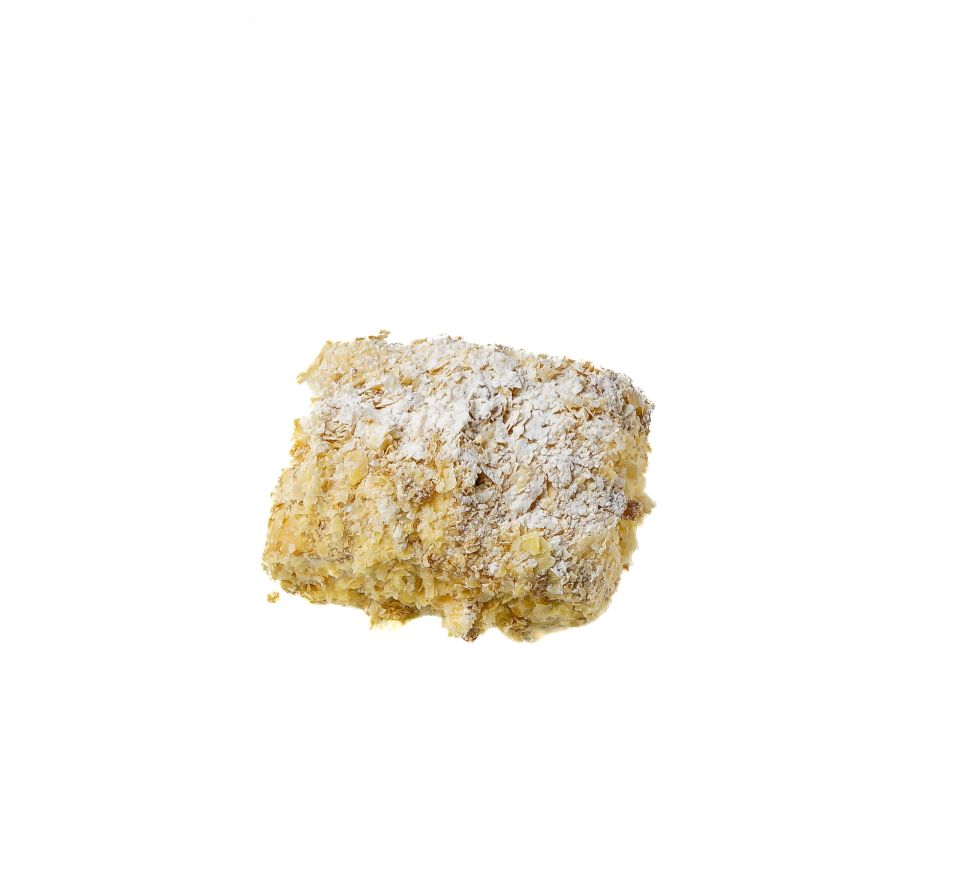 Cremeschnitte oder Mille-feuille:buttriger Blätterteig, Vanillepudding.