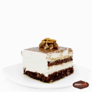 Das Wallnusskuchenstück ist eine Variation des traditionellen griechischen Kuchens Karidopita. Es ist eine wahre Gaumenfreude, die durch die beeindruckende Kombination von Zutaten besticht. Die Zusammensetzung umfasst einen Kakao-Pandispan, Sirup, eine Schicht aus fein gemahlenen Nüssen, Zimt, Nelken und eine samtige Milchcreme mit Vanillegeschmack. Die Veredelung mit einer Schicht aus Milchschokolade und gehackten Walnüssen verleiht ihm ein einzigartiges Erscheinungsbild.