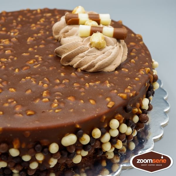 Wenn Sie den exquisiten Geschmack von Pralinen in verschiedenen Variationen erleben möchten, ist dieses Dessert die perfekte Wahl. Die Ferrocher Torte besteht aus Kakao-Biskuitteig, Pralinencreme, Pralinenmousse, Milchschokoladenganache und knusprigen Haselnüssen.