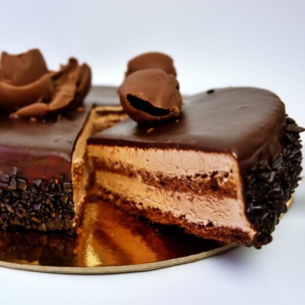 Die Chocolatine Torte ist ein Rezept, das speziell für Liebhaber von dunkler Schokolade zubereitet wurde, denn es ist ein Kuchen, der die Geschmacksnerven erfreut. Er enthält Kakao-Biskuitteig, belgische Mousse au Chocolat, Milchcreme und dunkle Schokoladen-Ganache. Die Chocolatine Torte ist ein besonderer Genuss und ein perfektes Dessert, wenn es um den kräftigen Geschmack belgischer Schokolade geht.